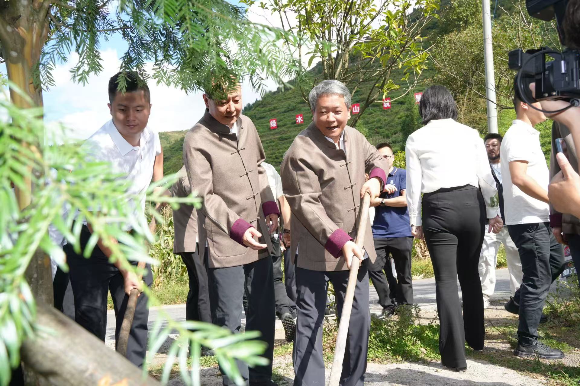 12家企业代表共同为“枸酱树”纪念树揭幕,象征产业与文化的传承