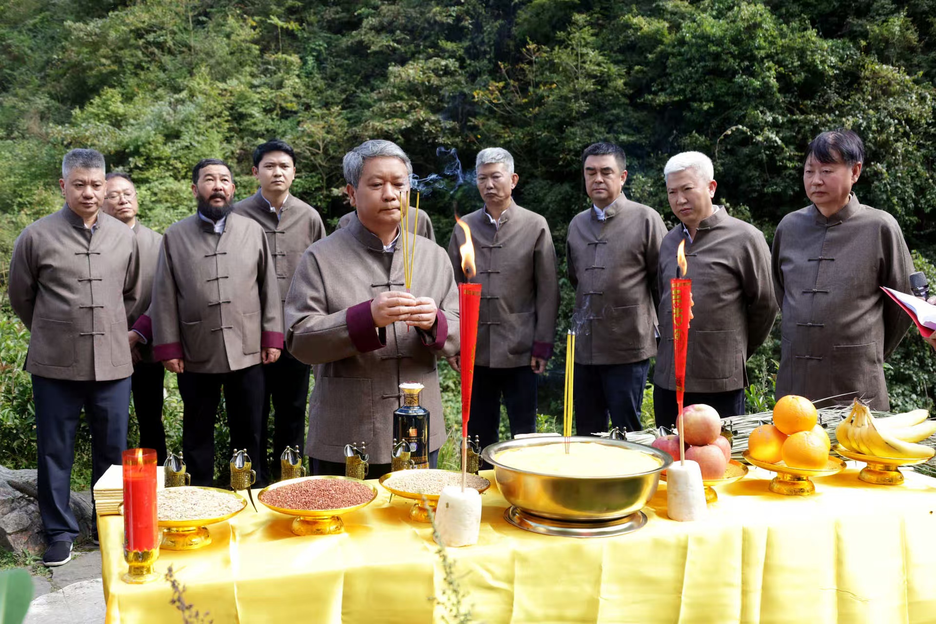 10月9日,时近重阳,在云南省镇雄县赤水源镇人民政府支持下,由钓鱼台酒业与贵州仁怀11家酒企共同发起,贵州省白酒企业商会、仁怀市酒业协会参与的“重阳溯源感恩行”活动,在赤水河源头云南省镇雄县举行。企业代表们依古礼完成感恩仪礼、公益捐赠、纪念树揭幕等仪程,贵州省白酒企业商会会长、钓鱼台酒业总经理丁远怀全程参与。